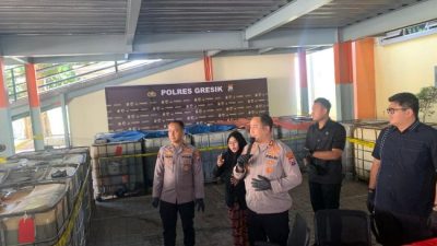 Kasus Penimbunan dan Penyalahgunaan BBM Solar Subsidi berhasil diungkap Polres Gresik ” 8.000 Liter diamankan…